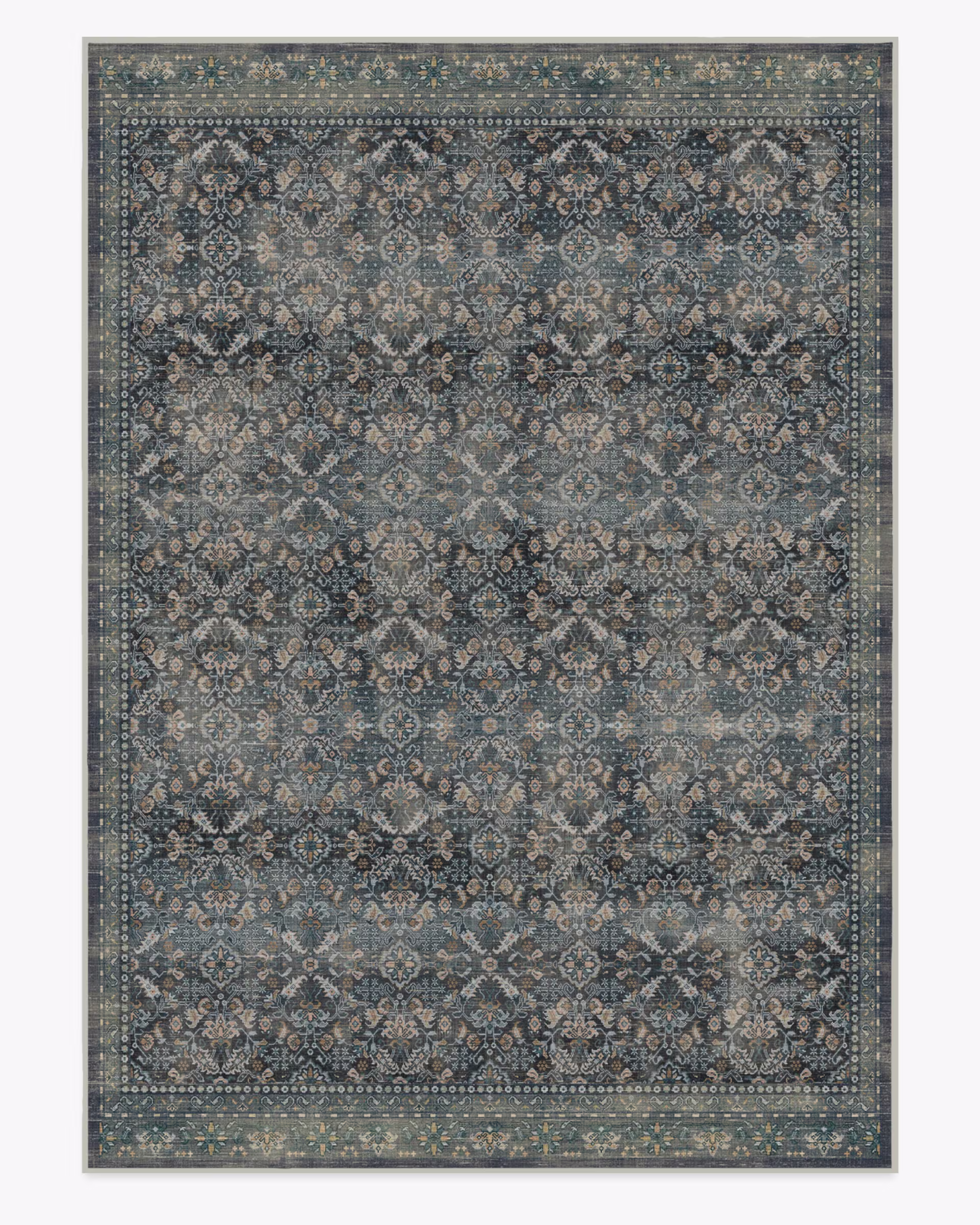 The Frances Vintage Teal Blue Rug from Persian Rugs will take your lounge to entirely new levels of beauty. This rug gives a touch of classic appeal to any decor with its elaborate design and antique teal blue shade, exuding refinement. Designed with opulent luxury in mind, it creates a warm ambiance for socializing or unwinding. Its washable construction also makes upkeep simple.